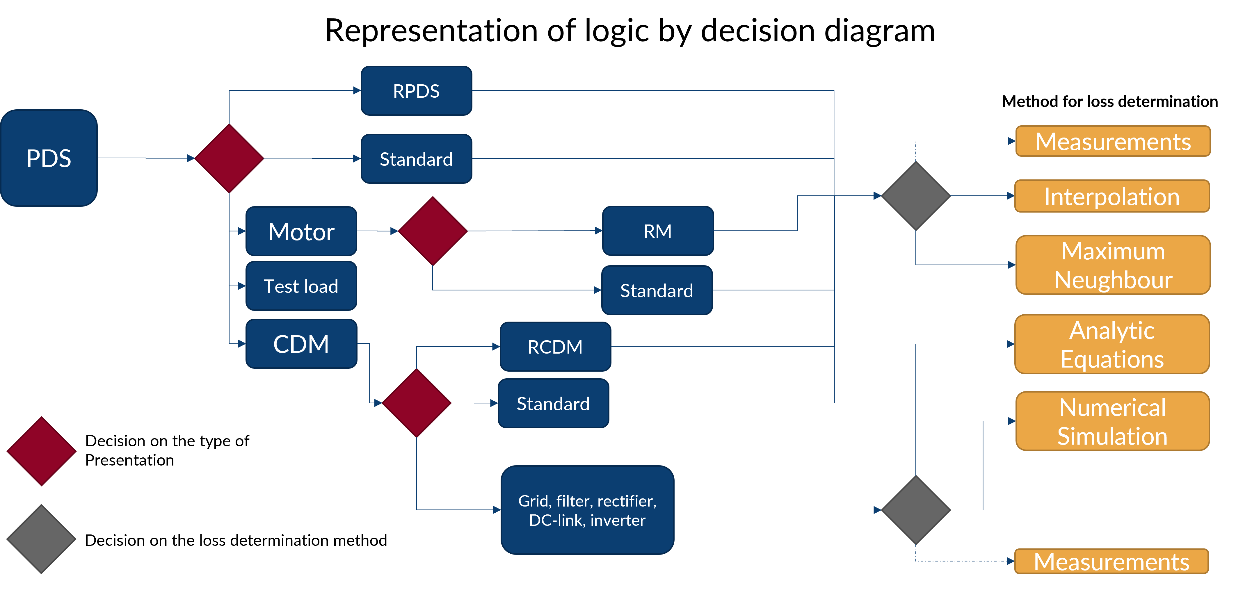 In the further development of the demonstrator, it will also be possible to determine losses via numerical simulations and to integrate measured values. The following figure shows the decision diagram for determining the losses.